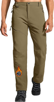 SPECIFICITIES: Mens ski pants waterproof insulated, the surface layer made of three-stage waterproof treatment fabric, effectively prevents the water molecules from penetrating, it can help you stay dry for 10-15 minutes on rainy days. Hiking pants men fleece, superior moisture-wicking treatment, breath freely, and keep warm and dry. Durable, lightweight and not bulky, windproof, effective in preventing loss of heat from the body, keeping you warm in -10? environments.