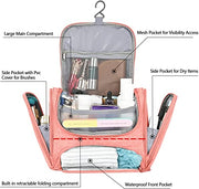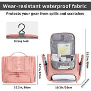 Hanging Toiletry Bag, Upgraded Hanging Travel Organizer Kit Full Sized Water-resistant Makeup Cosmetic Bag Large Capacity Storage Bag for Accessories, Shampoo, Full Sized Container, Toiletries (Pink)
