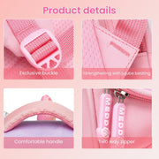 SCHOOL BACKPACK: Delight your girls with this fashion and utility school bag for girls. This school backpack is adorned with cute cartoon prints and a delightful pink hue, making it incredibly charming. It features 6 colorful badges, adding a playful and personal touch, making it a must-have school back that any girl would love to carry, combining style and function seamlessly.