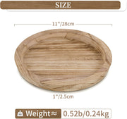 Material and Size: This vintage candle plate made of high quality paulownia wood, with beautiful organic wood grains, lightweight and durable. The size of round tray is 11.02"L x 11.02"W x 0.98"H, perfect size to put on home table hold your favorite candles or other small items keep your countertop organized.