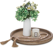Hanobe Decorative Serving Tray Wood: White Washed Bead Round Tray Decor for Coffee Table Rustic Wooden Trays Farmhouse Centerpiece for Living Room Kitchen Counter
