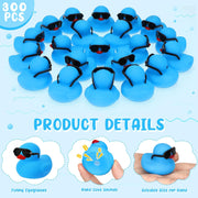 Hiboom 300 Pack Mini Rubber Ducks with Sunglasses Sets Duck Bath Toys Cute Float Squeaky Bathtub Duckies Toys for Baby Shower Birthday Party Favors Class Carnival Prizes Car Decor(Yellow)