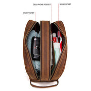 Hiram Genuine Leather Cosmetic Bag For Men, Vintage Crazy Horse Leather Man Make Up Bags, Small Travel Bags, Male Toiletry Bag (Brown)