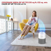 - CADR of Up to 152 m3/h and coverage area of up to 235 sq. ft. or 22 sq.m2 with 2 air changes per hour