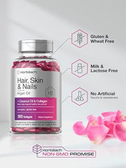 BEAUTY INFUSED: Advanced Hair, Skin and Nails supplement featuring Argan Oil & Hydrolyzed Collagen! OPTIMAL ABSORPTION: Horbaach's Max Strength quick release softgels are super concentrated YOUTHFUL FORMULA: Our Clean Beauty formula is enriched with potent Vitamins, Minerals and Nutrients NATURALLY FREE OF: Gluten, Wheat, Yeast, Milk, Lactose, Artificial Flavoring & NON-GMO.