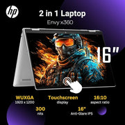 HP Envy x360 2-in-1 Laptop 2024, 16" WUXGA Touchscreen, Core Ultra 7 155U(>i7-1355U, 4.80 GHz), Copilot AI Laptop, 5MP IR camera, Backlit Keyboard,Windows 11 Home, Silver(16GB 6400 MHz DDR5 | 2TB SSD)