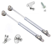 Transform your cabinet doors with these premium hydraulic gas struts that provide smooth, controlled lifting action. Each strut in this 2-pack set delivers 80N/18lb of lift support, perfect for keeping your cabinet doors securely open. The silver-finished struts come complete with all necessary mounting hardware, including screws and brackets for hassle-free installation. These adjustable spring hinges are ideal for kitchen cabinets, cupboards, and other furniture applications where controlled lifting is desired. The durable construction ensures reliable performance, while the sleek design adds a modern touch to your cabinetry. The versatile mounting options and included hardware make these struts suitable for various door sizes and weights. Upgrade your cabinet functionality with these professional-grade lift supports that provide consistent, balanced movement and eliminate sudden drops.