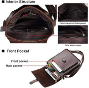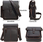 I0I&I0I Genuine Leather Messenger Bag for Men Small Retro Satchel Flap Crossbody Shoulder Bag Fits 10" Tablet, Dark Brown