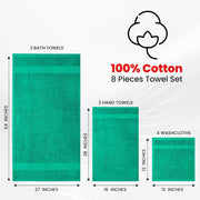 Infinitee Xclusives Premium Bath Towels Set - [Pack of 8] 100% Cotton Highly Absorbent 2 Bath Towels, 2 Hand Towels and 4 Washcloths - Hotel & Spa Quality Bath Towels for Bathroom (Shadow Grey)