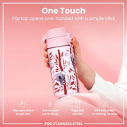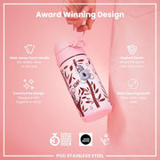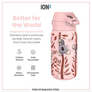 Ion8 Lightweight Steel Kids Water Bottle, 400ml/13oz, Non-Insulated, Leak Proof, Easy to Open, Secure Lock, Dishwasher Safe, Fits Cup Holders, Carry Handle, Metal Water Bottle, Pink, Baby Koalas