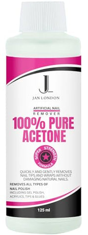 JAN LONDON 100% Pure Acetone Nail Polish Remover for UV/LED Gel, Acrylic Nails, and Nail Varnish Soak Off – Professional Strength, Fast-Acting Formula, 125ml