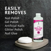 - 100% pure acetone for efficient, residue-free nail product removal.
