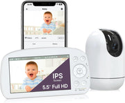 Jazaad 5.5" Wifi Baby Monitor - 1080P Full HD Split Screen & 2200ft Range, Monitor & App Control, Cry & Motion Alerts, Full HD Night Vision, 5000mAh Battery, 2-Way Talk, Multi-User, Triple Security