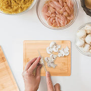 The Joejis Bamboo Chopping Board Set comes from a sustainable source of eco-friendly materials that are naturally resistant to bacteria and fungi. Unlike plastic bread boards, bamboo is biodegradable and renewable. The juice grooves on this handy chopping board retain overflows for mess-free cutting. The baking board is reversible, which allows you to work with one or the other side. In addition to chopping meat, fish or vegetables, this wooden chopping board set, large and small, can be used as an aesthetic wooden serving board. Hand wash in warm water only, do not put in dishwasher. Measuring 20x15cm, 28x22cm, & 33x22cm, it is perfect as a bamboo bread board or as a serving board large enough for a dinner or party.