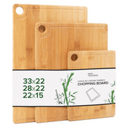 Joeji's Kitchen Set of 3 Bamboo Chopping Boards – Durable Wooden Chopping Board 20 x 15 cm 28 x 22 cm & 33 x 22 cm Wooden Kitchen Chopping Board