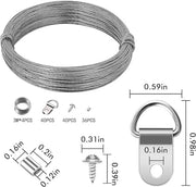 JOEJNCED 100pcs Picture Hanging kit, Picture Hanging Hardware with Wire Picture Hanging Kit, Wall Hooks for Hanging Pictures with Wire, Screw, D Ring, Loop Sleeves for Picture Frame, Mirror, Art