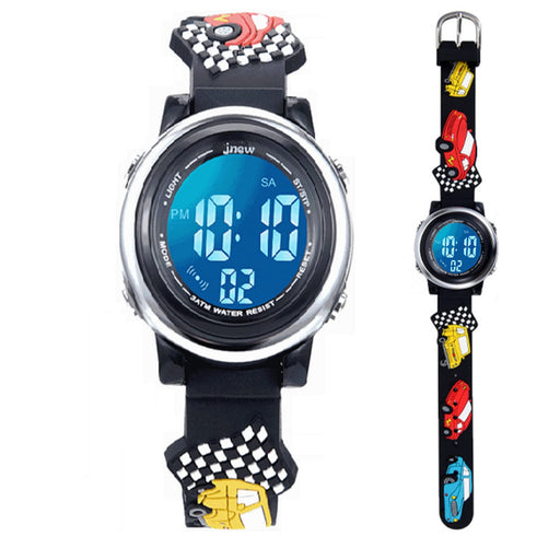 EVCRIERH Kids Digital Watches Toddler 3D Cartoon Wrist Watch 7 Color Luminous Waterproof Sport Watch Electrical Watches with Alarm Stopwatch for 3-10 Year Boys Girls (Black)