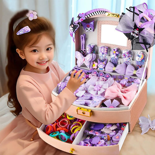 Hair Accessories for Girls, Purple Kuromi Hair Accessories Set including Hair Clips, Hair Ties, Hair Barrettes and Bows with Storage Box, Hair Accessories Gift Box for Kids Age 3-10 (KLM-03)