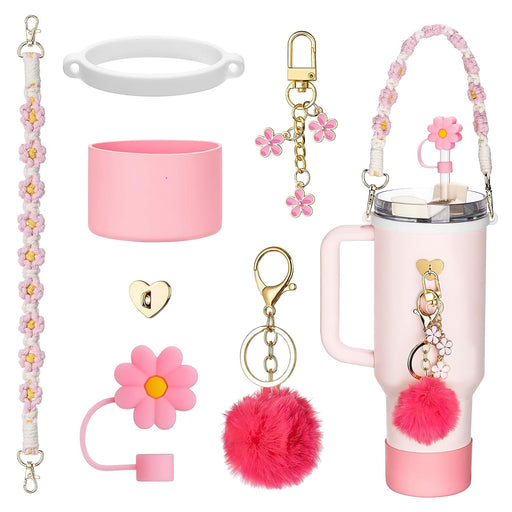 View full detailsHahamiya Stanley Cup Accessories Set of 7 - Silicone Boot, Water Bottle Handle Strap, Straw Cover, Charms for 40/30 oz Tumbler - Pink