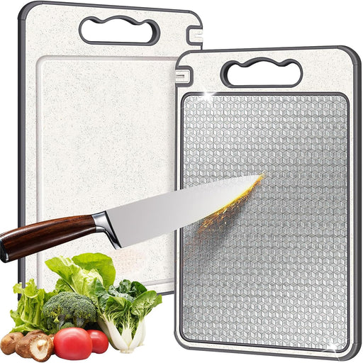 Hahamiya 304 Stainless Steel Cutting Board,Double Sided Chopping Board for Kitchen, Juice Groove,Scratch-resistant Mesh Design,Non-slip Silicone Wrap,Non-Toxic BPA Free for Meat Vegetable-1Pcs