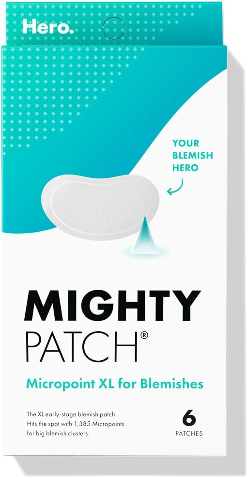 View full detailsHero Cosmetics Mighty Patch Micropoint™ XL for Blemishes - Hydrocolloid Acne Spot Treatment Patch for Early Stage Zits and Hidden Pimples, 1,385 Proprietary Micropoints (6 Count)