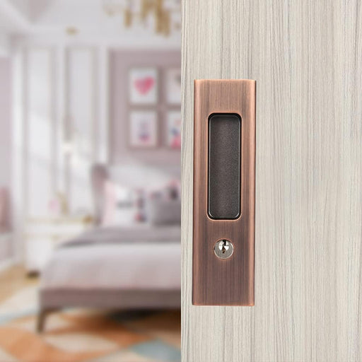 View full detailsyouthua 6.3†Privacy Pocket Door Lock Hardware,Invisible Sliding Door Lock with Keys,Recessed Handle Latch, Double Barn Door Lock, Invisible Furniture Hardware (Red Copper)