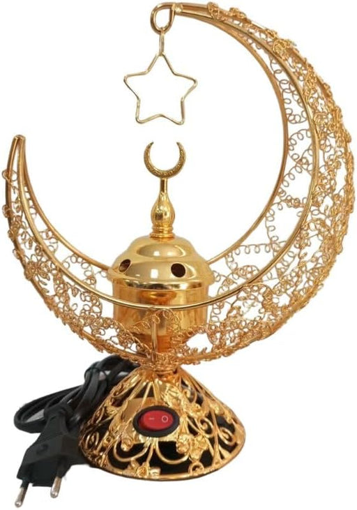 Vintage Arabic Bakhoor Burner - Electric incense Holder Stand with Metallic Plug-in Charcoal - Portable Aroma Diffuser for Home, Office, Yoga, Spa - Incense Censer for Aromatherapy