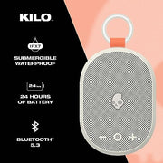 BOOMING BASS IN A PORTABLE PACKAGE. This weather-resistant, adventure-ready powerhouse packs big battery life, the latest version of Bluetooth and a wireless linking system that lets you sync two Kilo speakers to blast your latest playlist in full stereo.