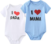 What You Get --- 2-Pack bodysuits,I love papa(Dad) and I love mama(Mom),please check the size chart before order.