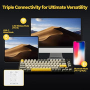 - ãWireless & Wired ConnectivityãThe Ajazz AK820 Pro supports connection via Bluetooth or 2.4GHz for wireless connectivity, or with the included Type-C USB cable. With Bluetooth 5.1, the keyboard responses faster and save more power than the former Bluetooth versions. The keyboard is also easily switched among the three modes for efficient multitasking and speedy performance. Included 4000mAh battery ensures a long and steady use, without worries of short out.