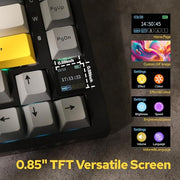 - ãTFT Screen: The Interactive InterfaceãAK820 Pro mechanical keyboard comes equipped with a TFT Screen, serving as your interactive interface for real-time updates and customization. The high-definition display allows for customizable visuals, battery status, date & time display, connectivity & OS display, and backlight effects. With this TFT Screen feature breakdown, itâs easily to understand the full range of its capabilities.