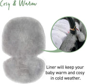 Liner – Thanks to the inherent qualities of sheepskin, this liner will keep your baby warm and cosy in cold weather.