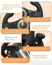 PXN V3 Pro Game Steering Wheel with Pedals, 180° Racing Steering Wheel, Vibration Return, Shift Paddles, Sequential Gear Lever, Steering Wheel for PC, PS3, PS4, Xbox One & Series, and Switch Features: 1:Compatible with Xbox Series X|S, PC, PS3, Playstation 4, Xbox One and Switch; 2: Equipped with two built-in vibration motors for More racing experience Realistic; 3: Ergonomic design imitating a racing steering wheel, 180° steering wheel, non-slip design with wave pattern for optimal grip; 4: Linear pedals, for more sensitive and accurate braking effects; 5: Plug and play, PC steering wheel, X-input and D-input; 7: Sturdy suction cups and U-shaped bracket for easy attachment of the game wheel on the table; 8: change pallets and Manual gear shifter. Specifications: Game Accessory Type: Game Steering Wheel; Applicable Products: PC, PS3, Playstation 4, Xbox Series X|S, Xbox One, Switch; Connection Method: USB Wired Connection; Applicable System: Windows XP/ 7/ 8/ 10/ 11; Support Keys: Programmable Buttons; Vibration Function: Dual Motor Vibration; Rotation Angle: 180°. Package Contents: 1 x Game Steering Wheel, 1 x Pedals Set, 1 x C-Shaped Mounting Bracket, 1 x PXN V3 Pro User Manual Game Steering Wheel, # Racing Steering Wheel # Gaming Steering Wheel # PC Steering Wheel # Xbox One Steering Wheel # PS4 Steering Wheel # XBox Steering Wheel # Steering Wheel Switch # Steering Wheel for Nintendo Switch # Steering Wheel for Nintendo Switch PC # Steering Wheel X Box Series S # XBox Series X Steering Wheel # Steering Wheel with Pedale # Gaming Steering Wheel # Steering Wheel and Pedals # Steering Wheel for Laptop # Switch Steering Wheel with Pedal # Games and Accessories # Steering Wheel Farming Simulator # Steering Wheel and Pedal # Steering Wheel for Playstation 4 # Steering Wheel with Pedal and Gear Lever # Racing Wheel # Driving Simulator # Steering Wheel for Windows 7/ 8/ 10/12 1#