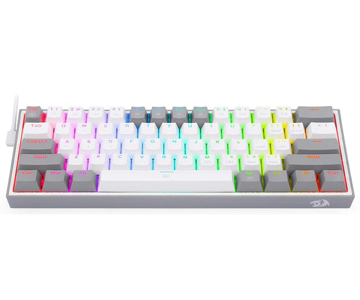 Redragon K617 FIZZ 60% wired RGB gaming toetsenboard, 61 toetsen, compact mechanical toetsenboard with witte en grijze, mix gekleurde keycaps, lin...