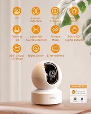 Imou 2K Camera for Home Wifi Cameras Security Camera 360� Indoor Cameras Ultra-Clear Surveillance Camera Human Detection, Abnormal Sound for Baby Monitor Night Vision, Smart Tracking(DK2 2K)