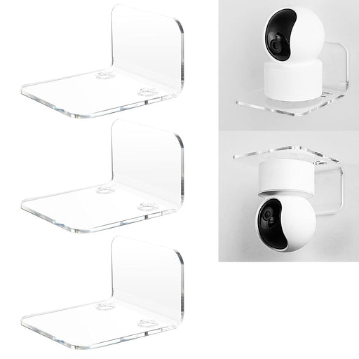 OAPRIRE Acrylic Floating Wall Shelves Set of 3 for Security Cameras, Baby Monitors, Speakers - Universal Small Wall Shelf with Cable Clips, 10-Piece Strong Tapes, No Drill (Clear)