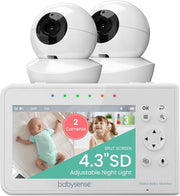 Babysense 4.3" Split Screen, Baby Monitor with Two Cameras and Audio