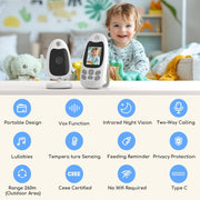 BOIFUN Video Baby Monitor with Camera, Two-way Audio, No WiFi, VOX Mode, Night Vision, 2-inch Screen Battery Powered, 8 Lullabies, Feeding Reminder, Smart Temperature, Elder/Pet, Wireless, Portable