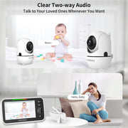 💖【REMOTE 355° PAN and TILT BABY MONITOR & 5" COLOR DISPLAY】: Enjoy a 5" Big Screen on this baby camera monitor. Remote control camera rotate 355° in horizontal and 120° vertical gives you a larger view of your baby's room. 2X zoom function ensures clear visuals. Noiseless camera rotation for a peaceful environment.