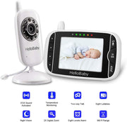 HelloBaby Video Baby Monitor 3.2'' LCD Display Screen with Camera, Infrared Night Vision, Two Way Talk, VOX Mode, Built-in Lullabies, Long Range and Temperature Monitoring