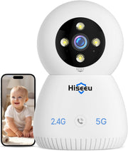 Hiseeu Indoor Security Camera, 2.4G/5G 5MP Baby Monitor Pet Camera for Home Security, PTZ 360°, Auto Tracking, 2 Way Audio, Night Vision, PIR Detection, Local Storage…