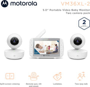 Motorola Nursery VM36XL Video Baby Monitor Camera, 1000ft Range no WiFi 2.4 GHz Wireless, 5" Screen, 2-Way Audio, Pan/Tilt/Zoom, Temp, Night Vision
