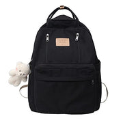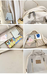 AONUOWE Preppy Backpack with Plushies Cute Backpack for Teen Girls Light Academia Bookbags Solid Aesthetic School Bag