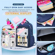 What's more, it features a spacious main compartment with water bottle pockets on each side, allowing your child to stay hydrated anytime, anywhere. The generous main compartment easily accommodates lunch boxes, folders, notebooks, and snacks, providing ample storage space for your child.