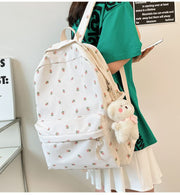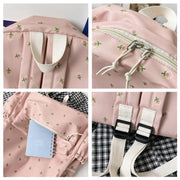 MININAI 2024 Kawaii Floral Print Backpack with Pendant Preppy Backpack Cottagecore Bag Coquette Aesthetic Backpack Daypack