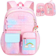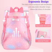 Qiccijoo Girls Backpack for Kids Bookbag Teens Girls Elementary School Bags Cute Student School Backpack Toddler Backpack Lightweight Waterproof Bag for Child(Pink)