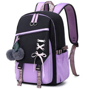 Teenage Girls Bookbag School Backpack Children Casual Daypack Schoolbag for Teens Black Purple