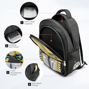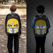 School Backpack for Boys Perfect School Backpack for Boys 5-9 Years OldSewing Robot Pattern School Backpacks for boys are sparkly, colorful & beautiful. Every kids loves it. A fashionable boys bag constructed with high quality Polyester and Oxford Cloth, sturdy yet lightweight. It will not add extra weight to kids' shoulders and back. A wonderful must have gift as school daily accessory. More Design DetailsLarge capacityAdjustable buckleErgonomic designSponge shoulder strap Perfect for school travel and gift. Note:Tap the eye to activate the flash.