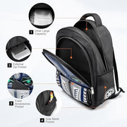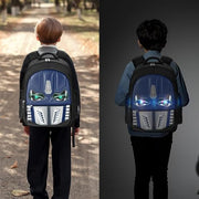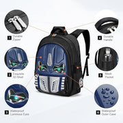 School Backpack for Boys Perfect School Backpack for Boys 5-9 Years OldSewing Robot Pattern School Backpacks for boys are sparkly, colorful & beautiful. Every kids loves it. A fashionable boys bag constructed with high quality Polyester and Oxford Cloth, sturdy yet lightweight. It will not add extra weight to kids' shoulders and back. A wonderful must have gift as school daily accessory. More Design DetailsLarge capacityAdjustable buckleErgonomic designSponge shoulder strap Perfect for school travel and gift. Note:Tap the eye to activate the flash.