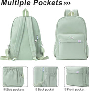 💕【Backpack Capacity】16.9*11.4*5.1in. This sage green backpack has a lot of space for textbooks, books, school supplies, 14/15 laptops, magazines, umbrellas and water bottles.